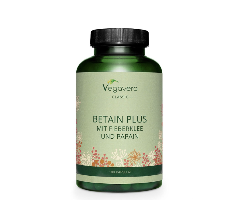 Бетаин хидрохлорид с горчивче и папаин е уникална комбинирана формула, предлагана под формата на стомашно-устойчиви капсули. Комбинацията от три доказано ефективни натурални съставки (бетаин, горчивче, папин) подпомага храносмилателните процеси.