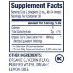 - Билков еквивалент, при препоръчителен дневен прием от 2 капкомера (2 мл.) – 2 гр. котешки нокът