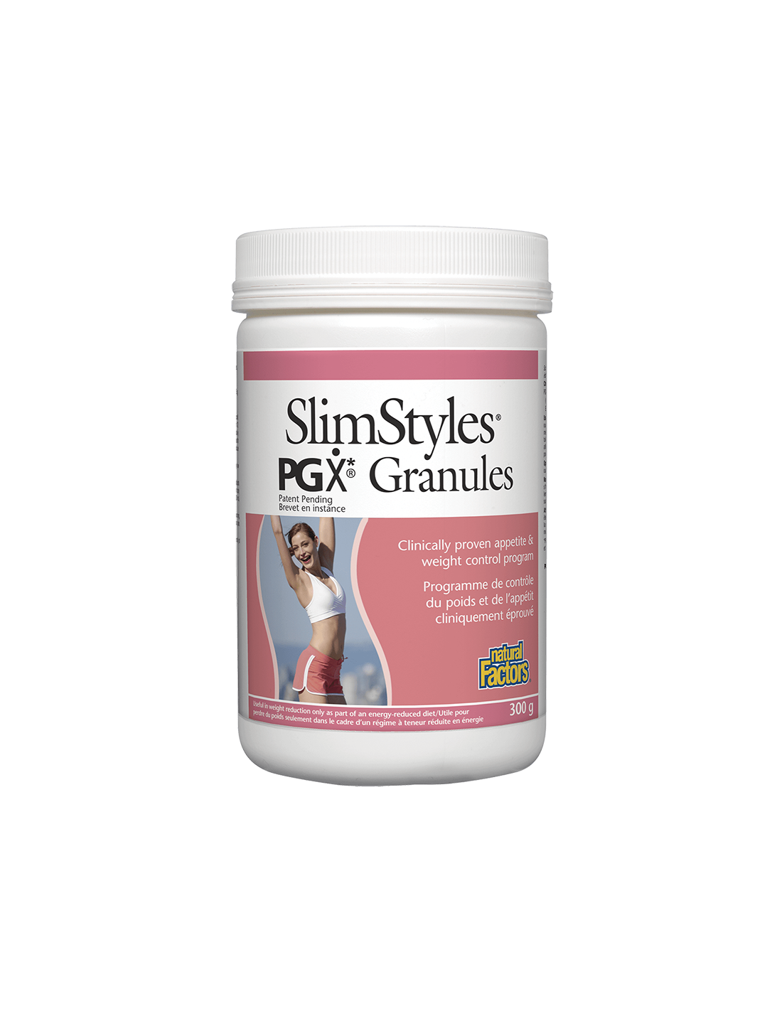 PGX SlimStyle на Natural Factors е напълно безопасен и естествен, ефективен начин за постигане и поддържане на нормално тегло. Клинично изследван, PGX насърчава здравословни нивата на кръвната захар, спомага за понижаване на гликемичния индекс на храните и намалява повишения общ и LDL (лош) холестерол. Това е клинично проучена програма, която намалява апетита и насърчава усещането за ситост, помагайки за ограничаване на апетита или преяждането.