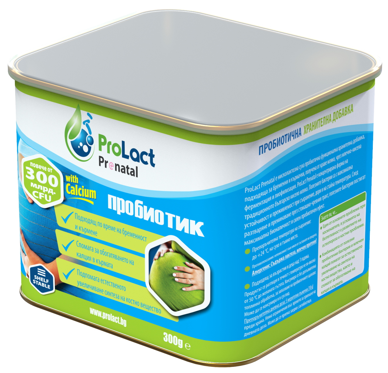 ProLact Prenatal е нисколактозна суха пробиотична функционална хранителна добавка, подходяща за бременни и кърмачки, получена от краве мляко, чрез млечно-кисела ферментация и лиофилизация. ProLact Prenatal е концентрирана форма на традиционното българско кисело мляко. Полезните бактерии са с максимална устойчивост и преживяемост при съхранение, дори и на стайна температура. След разтваряне и преминаване през стомашно-чревния тракт, полезните бактерии постигат максимална бионаличност и силен пробиотичен ефект.