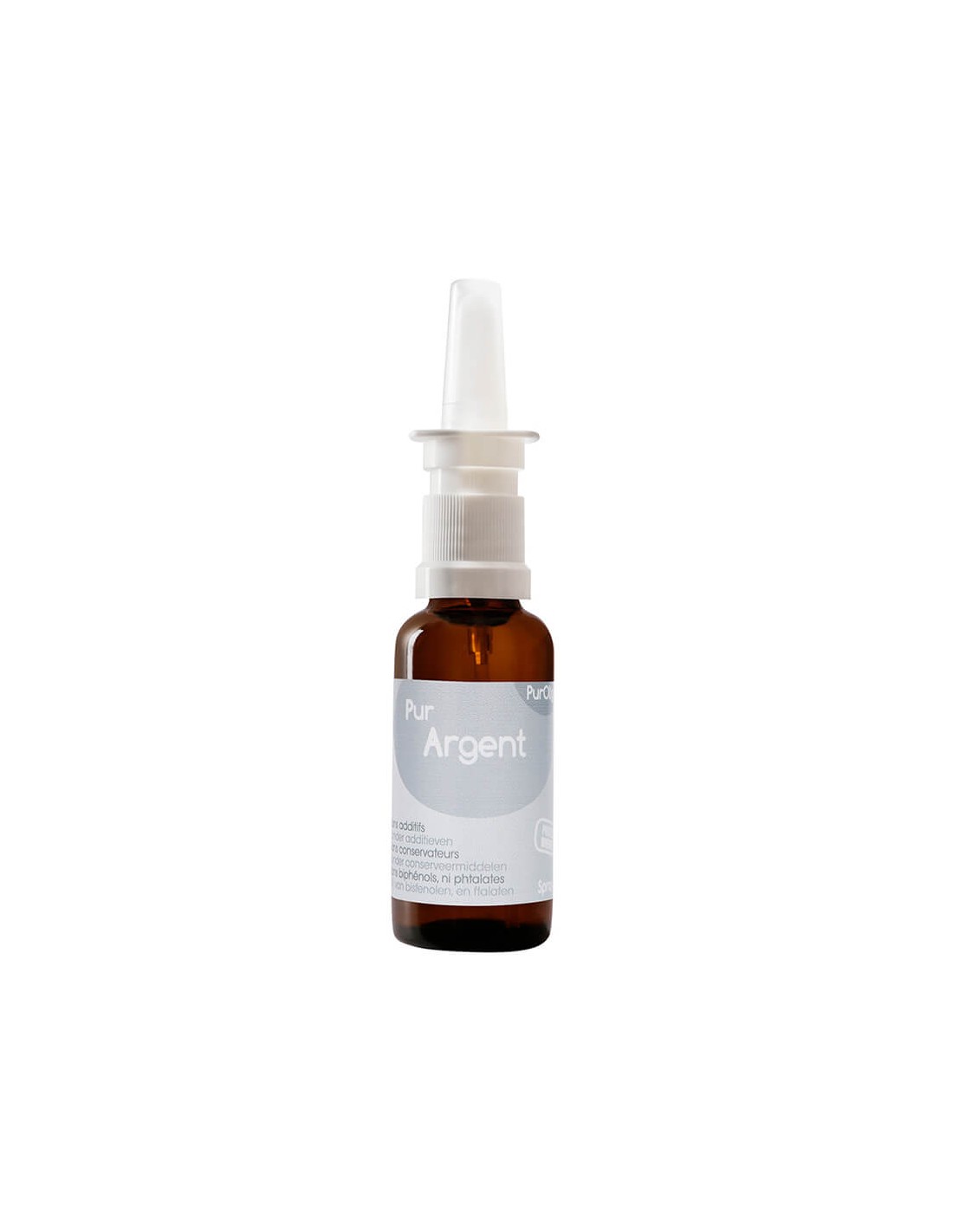 Pur Argent Spray /Спрей за нос с колоидно сребро на лаборатория Catalyons е естествен продукт, спомагащ не за бързото отпушване на носа. Той има силно изразено бактерицидно и противовъзпалително действие като облекчава дишането при грип и настинка и съдейства за бързото възстановяване на наранената лигавица на носа.