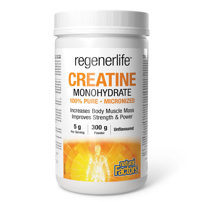 Creatine monohydrate от серията RеgenerLife на канадската компания Natural Factors e натурален продукт допринасящ за оптималното състояние на мускулите и енергийния метаболизъм.