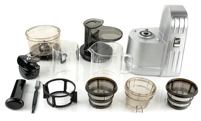 Повечето вертикални сокоизстисквачки имат само една приставка за изцеждане на сок. Новата Sana 828 включва три приставки:
