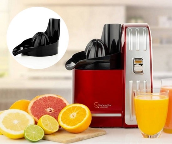 Със Sana 828 можете да правите сок от всякакви цитрусови плодове. Но ако искате да направите портокалов сок бързо, без да белите кората на плода, приставката за цитруси е удобен за целта аксесоар. Поставяйки приставка върху основата на мотора, вашата Sana EUJ-828 се превръща в мощна цитруспреса. Само разрежете плода наполовина и поставете върху въртящият се конус притискайки с ръка. Прясно изцеденият сок за секунди ще напълни чашата ви, а най-хубавото е, че не се налага да почиствате цялата сокоизстисквачка, просто изплакнете приставката под течаща вода.