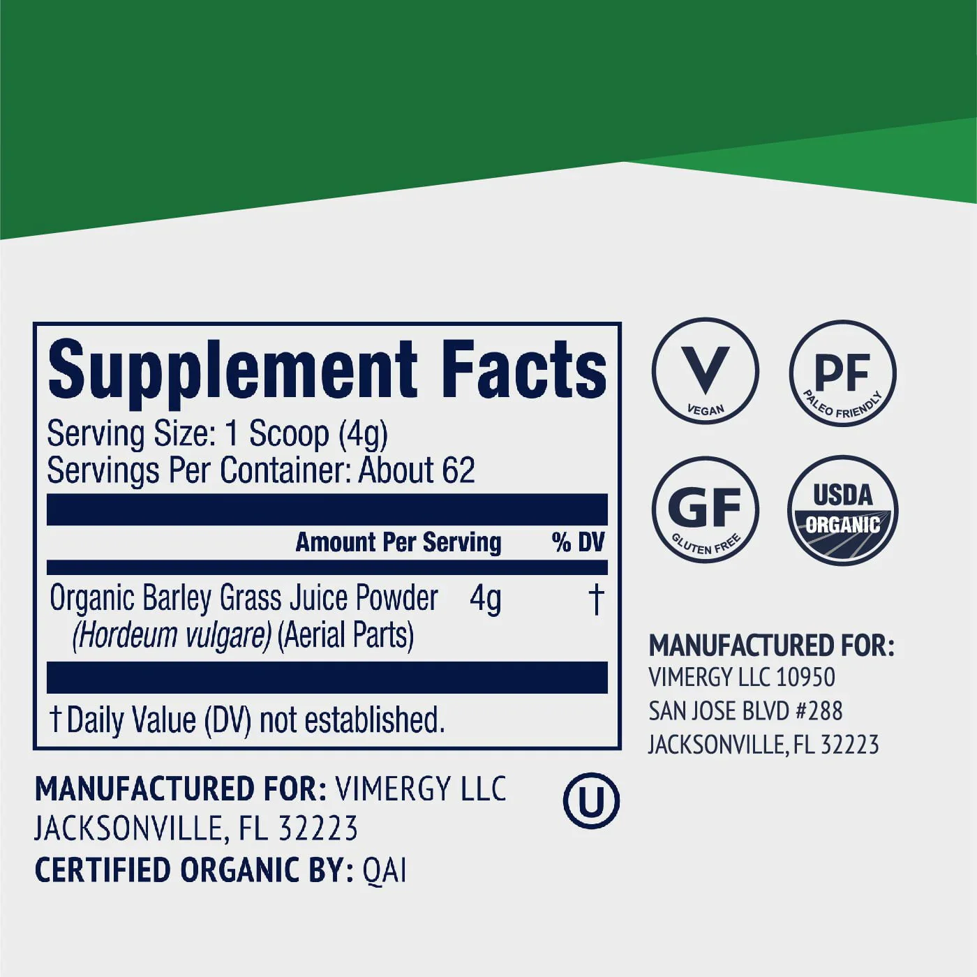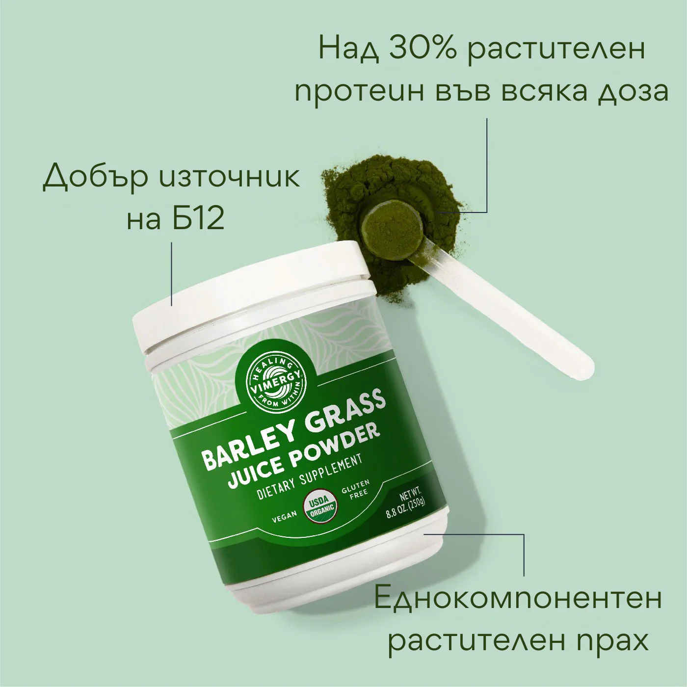 Информация за Сок от органична ечемичена трева на прах на Vimergy®