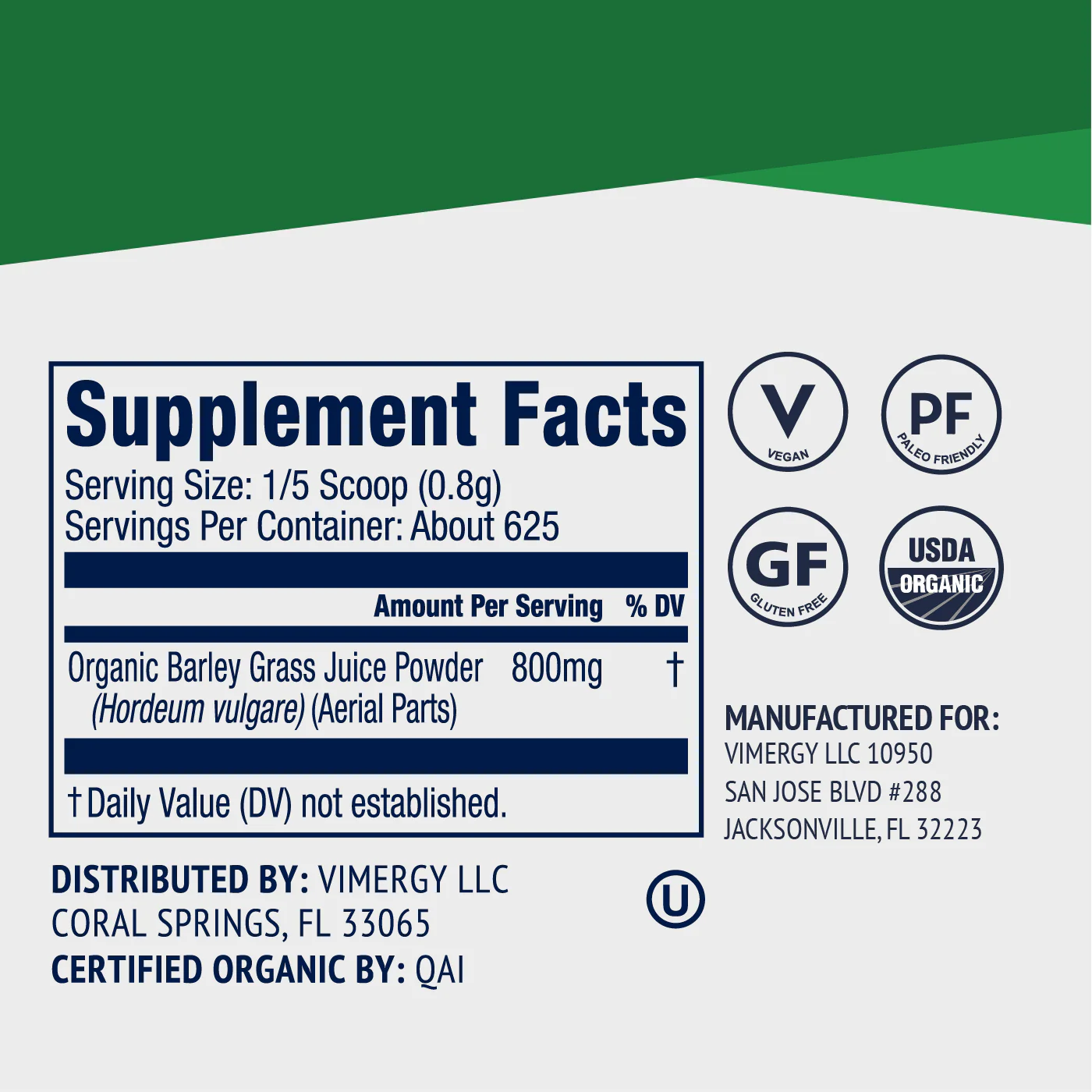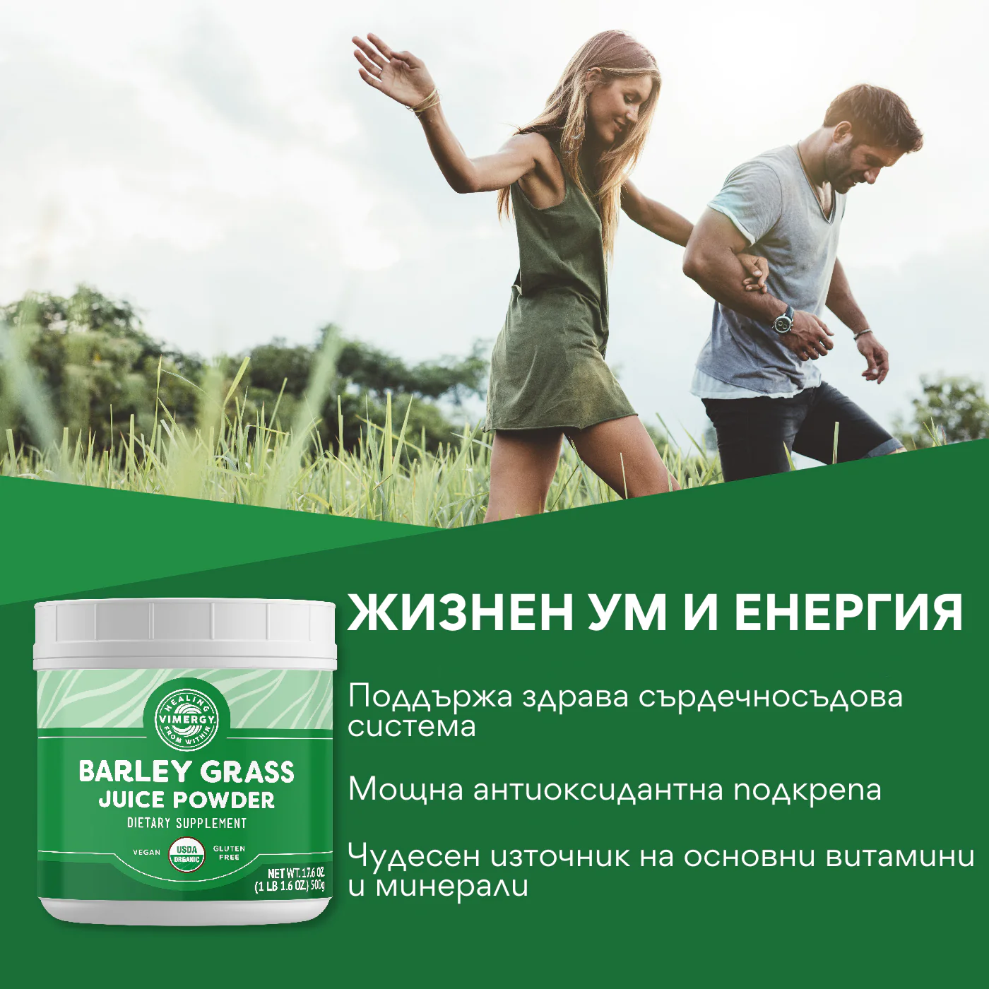 Информация за Сок от органична ечемичена трева на прах на Vimergy®