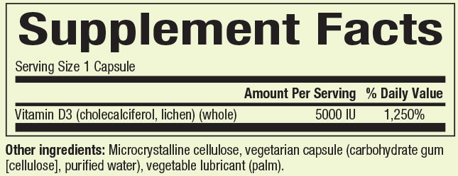 Произведен от диво отгледан лишей, растителният витамин D в тази формула е в естествената си форма (холекалциферол). Естественият витамин D3 е биоактивната форма на витамин D и е необходим за ефективното усвояване на калция, като от своя страна помага за формирането и поддържането на здрави кости и здрава имунна система.
