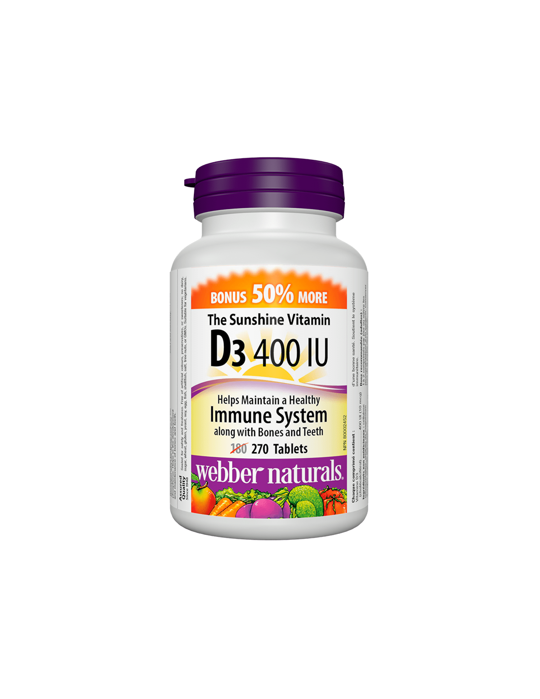 Витамин D3 от Webber Naturals естествената форма на витамин D или холекалциферол. Тя е с висока абсорбция и ефективност, защото аналогична с тази, която тялото ни само синтезира при контакт със слънчевата светлина. Макар способността сами да набавим този ценен витамини, рисковете от увреждане на кожата от UV лъчите все по-често са причина за неговия дефицит. Адекватният прием на витамин D в детството свежда до минимум риска от развитие на рахит, а при възрастни предотвратява остеомалация (меки кости). Недостигът на витамин D също е свързан с мускулна слабост и общи болки