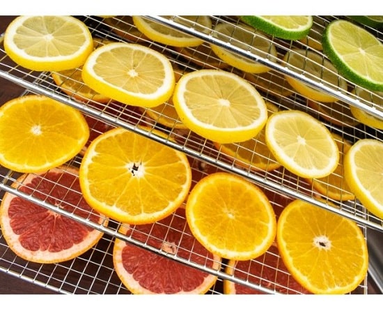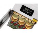 За бързо сушене на сочни пресни плодове и зеленчуци препоръчваме настройка на температурата от около 60°C. Това обаче само за първите два часа. Докато има охлаждане с изпарение на влага от храната, която трябва да се изсуши, тя не се загрява над 45°C, което цели запазване на хранителните вещества. След това, т.е. след около 2 часа, препоръчваме да намалите температурата до 42°C, така че да се запазят витамините и ензимите.