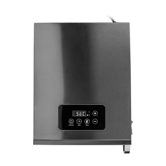 Дори никога да не сте имали опит със сушенето на храни, Wartmann ще Ви вдъхнови още от самото начало със своята лесна работа и първокласни резултати. Компактен дизайн, лесно управление, висококачествена конструкция (изработен от 100% неръждаема стомана) и тихия хоризонтален вентилатор на задната стена на устройството го прави идеален избор дори и за най-малките кухни. Хоризонталният въздушен поток изсушава равномерно на всичките шест нива. Опростеният сензорен контролен панел на Wartmann е гениално прост: превключвател за включване/изключване, таймер (може да се избере време за сушене между 30 минути и 72 часа), избор на температура (25°C до 90°C), поле за докосване и светодиоден дисплей. Уредът спира автоматично след изтичане на зададеното време за сушене.